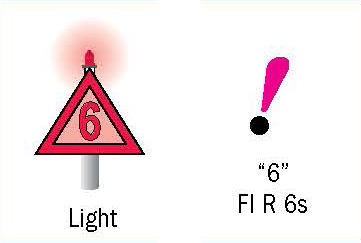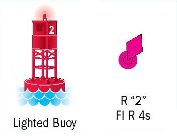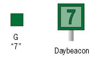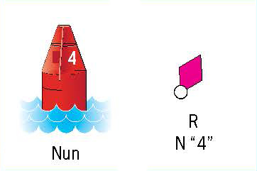 Daymarks are marker boards held up by poles and visible only during daylight hours. A light will have a marker board and visible at night. The small symbols next to the buoys, daymarks, and lights in the table above show how they will appear on nautical charts. For a more thorough explanation of aids to navigation and chart symbols, please refer to the Coast Guard's booklet, U.S. Aids to Navigation System and the National Oceanic and Atmospheric Administration's, U.S. Chart No. 1.