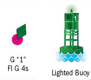 The following table compares the different buoy characteristics. Lights on buoys flash at different time intervals and these time intervals are noted on charts.